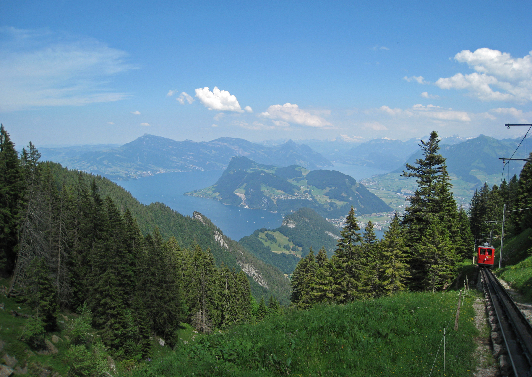 Pilatus Dağı’na Alpnachstad üzerinden teleferikle ulaşabilirsin. Bu teleferik, Avrupa’nın en dik açılı rotasına sahip teleferiği. Bazı noktalarda yere 48 derecelik açıyla hareket eden teleferik, heyecan verici bir deneyim sunuyor. Pilatus’un zirvelerinde ise Luzern Gölü’nün başrolde olduğu olağanüstü İsviçre manzaraları seni bekliyor.